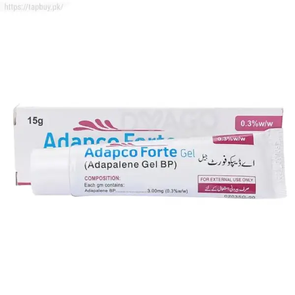 Adapco Forte Gel 3 mg 15 gm is used to treat acne vulgaris, a common chronic skin disorder where blackheads or whiteheads form due to blockage of the hair follicles and the sebaceous glands that follow them and lubricate the skin.